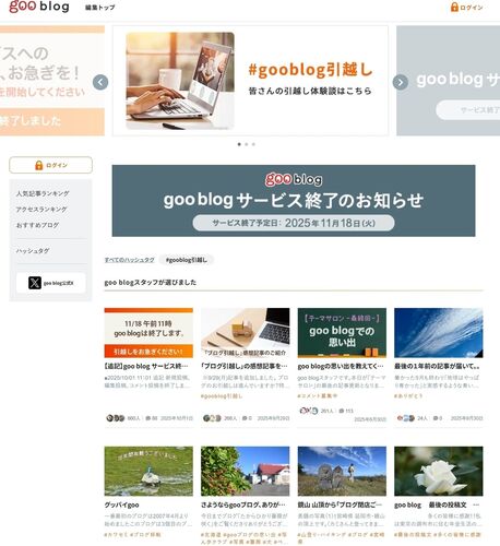 老舗ブログサービス「Gooブログ」が2025年11月18日に終了する。 goo blogサービス終了のお知らせ はてなブログが移行支援しているのでぜひGooブロガーのみなさまには移行してほしいけれど、長らく更新されていないブログは移行されず、消えていくんだろう。 …